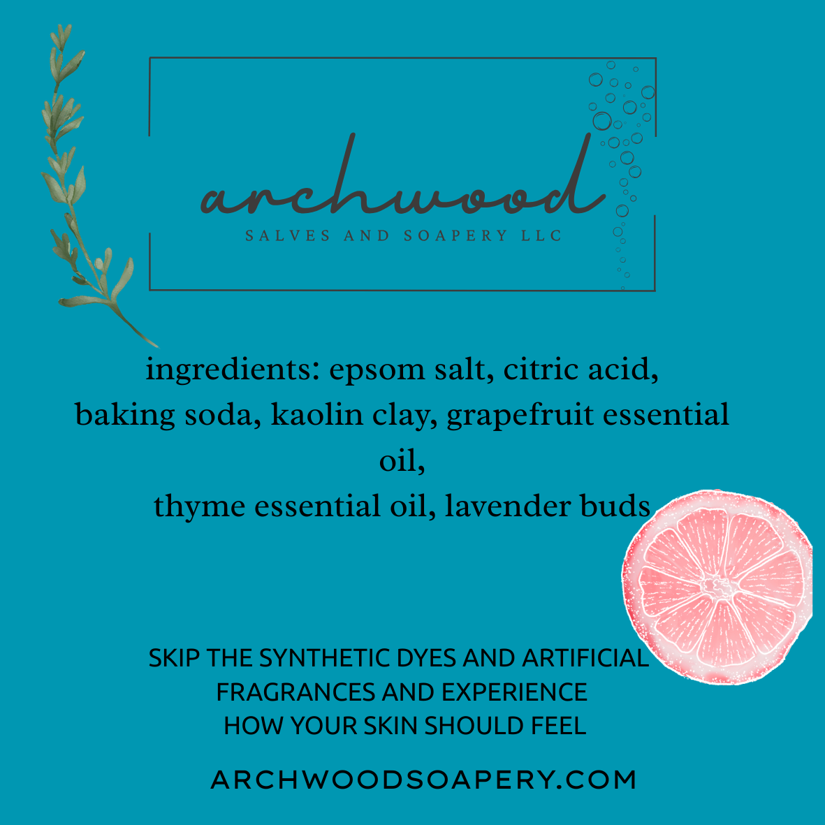 This magnesium bomb combines the coolness of a bath bomb without the gross-ness of a traditional bath bomb. Pressed with baking soda, epsom salt citric acid, kaolin clay, dried herbs and beneficial, food grade essential oils. Proudly cornstarch, mica and dye free!
