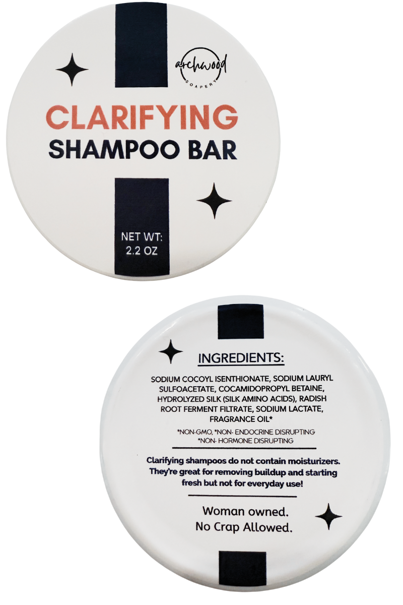 Clarifying Shampoo Bar consists of 3 different coconut-derived surfactants, silk amino acids at 8x the industry standard, a high-quality moisturizer and a probiotic preservation system to protect the bar and give your scalp what it needs to protect itself.